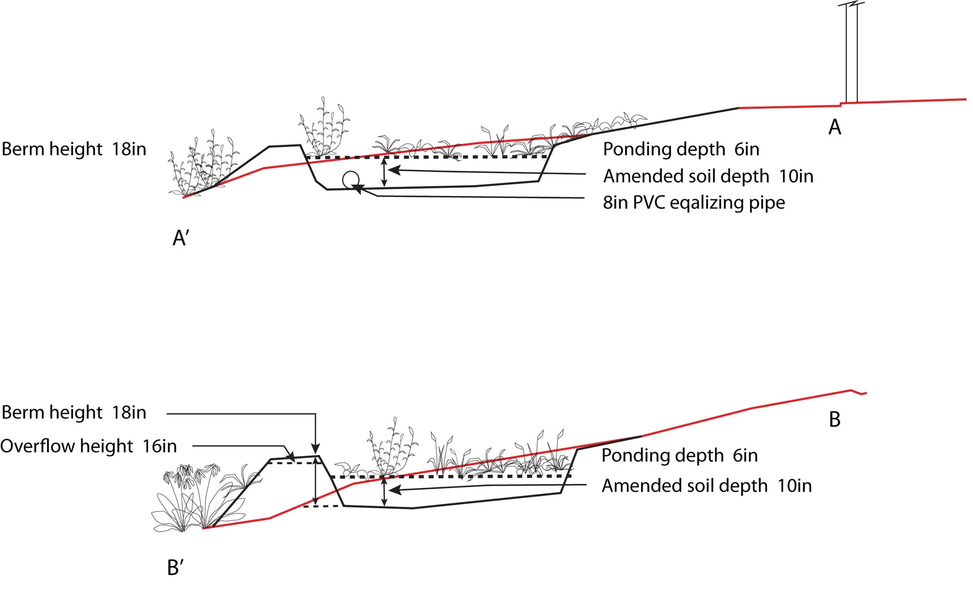A rain garden is not like the retention ponds that accompany large parking lots. A rain garden should be large enough to sequester (or detain) water that is shed from the property's impervious surfaces and drain within 24-36 hours to prevent mosquito eggs from hatching. While the water is on your property, though, it can supply needed water for a gorgeous array of plants that can attract and support a variety of pollinators and birds.